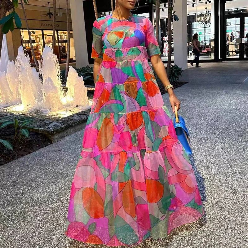 Crafted for everyday wear, this casual boho maxi dress combines breathable fabric with standout design details that bring a touch of retro flair. The high waist enhances your figure while providing all-day comfort, and the eye-catching print adds personality to any outfit. Style it with flat sandals and a woven bag for a beachy vibe, or dress it up with boots and layered jewelry for a chic boho look. This bohemian printed dress is a must-have addition to your spring and summer wardrobe.